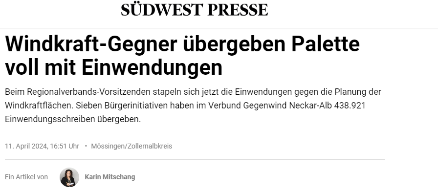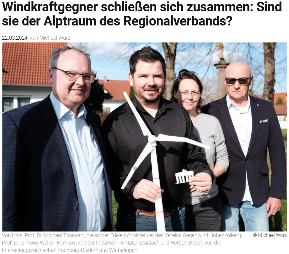 Jetzt, im März 2024, glühen die Drähte der Windkraftgegner wieder heiß: Dieser Tage haben sie sich offiziell zusammengeschlossen, Bürgerinitiativen im Zollernalbkreis, aber auch Mitstreiter aus dem Kreis Tübingen. Wird „Gegenwind Neckar-Alb“ der Alptraum für den Regionalverband? Wer sind die Akteure? Und was haben sie vor?