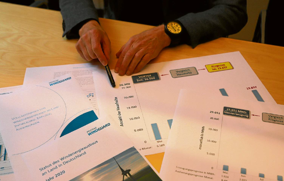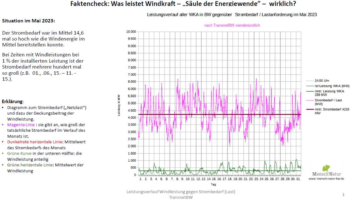 Der Beweis werde seit dem Frühjahr 2020 angetreten, denn seit Mai 2020 übernehmen die Bürgerinitiativen jeden Monat die Daten der EnBW zur tatsächlichen Stromerzeugung des Windparks Winterbach (Goldboden) bei Stuttgart, einem Vorzeigeobjekt des drittgrößten deutschen Energieversorungsunternehmens.