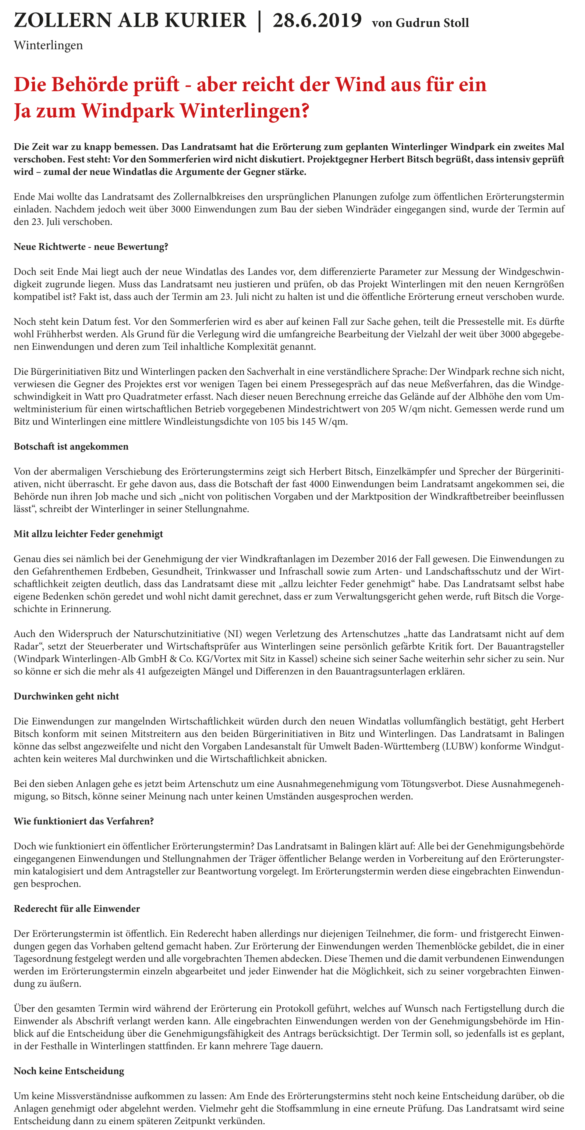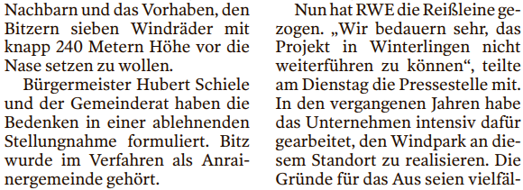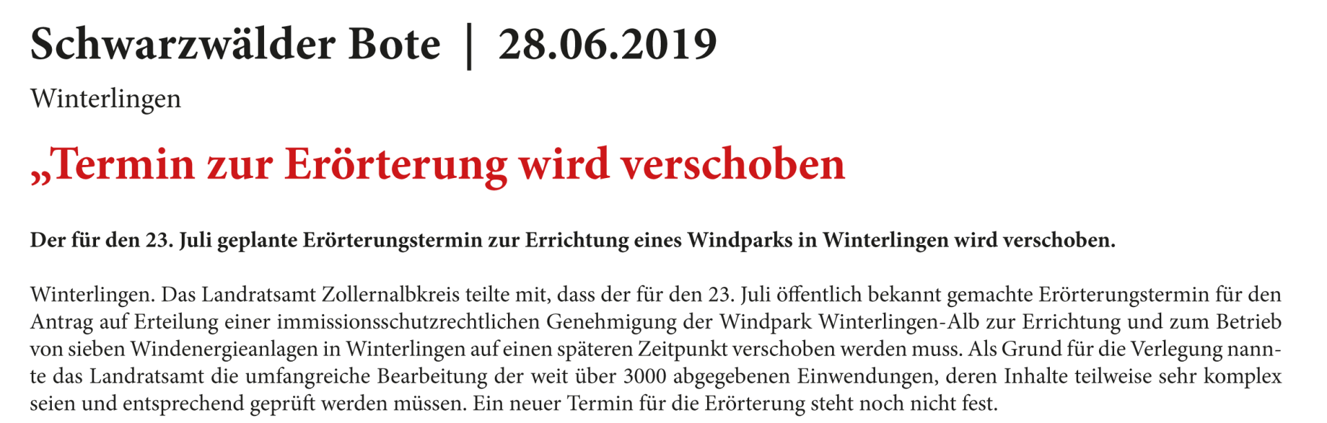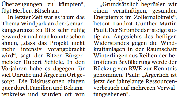 Sachen Windräderprojekt Winterlingen zurückgreifen. Die Begründung des LRA und meine 32 Seiten umfassenden Einwendungen gegen die zwischen Winterlingen und Bitz geplanten 7 WEA liegen dicht beieinander.
