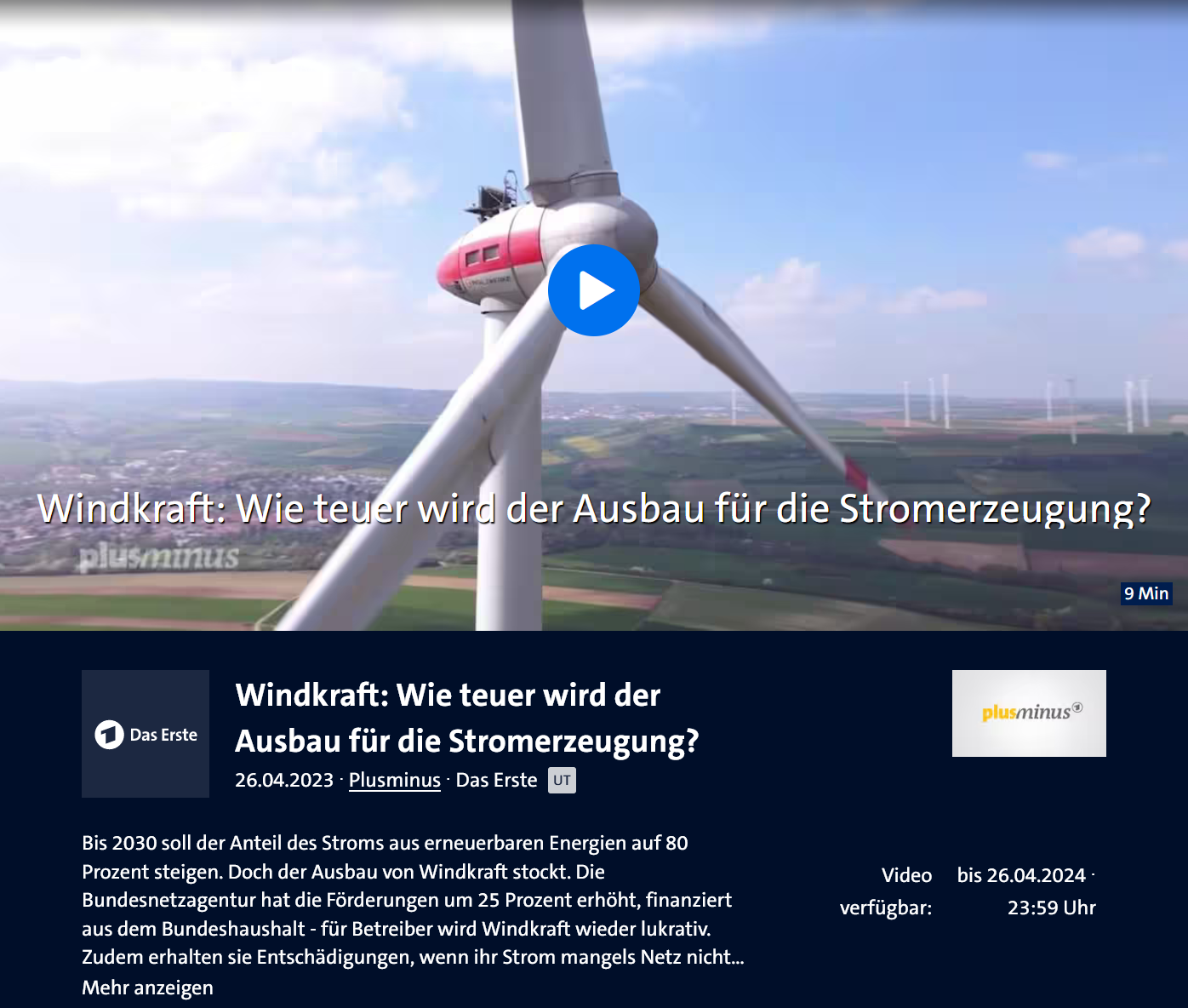 Der Bundesverband WindEnergie sucht übrigens für die Geschäftsstelle in Berlin eine*n Referent*in für den Bereich Politik zur „Übersetzung“ der Anliegen der Windenergie gegenüber den politischen Entscheidungsträgern (und umgekehrt). „Übersetzung“ klingt hier harmlos: Dahinter verbirgt sich knallharter Lobbyismus, der auch schon mal als Korruption verstanden werden kann.
