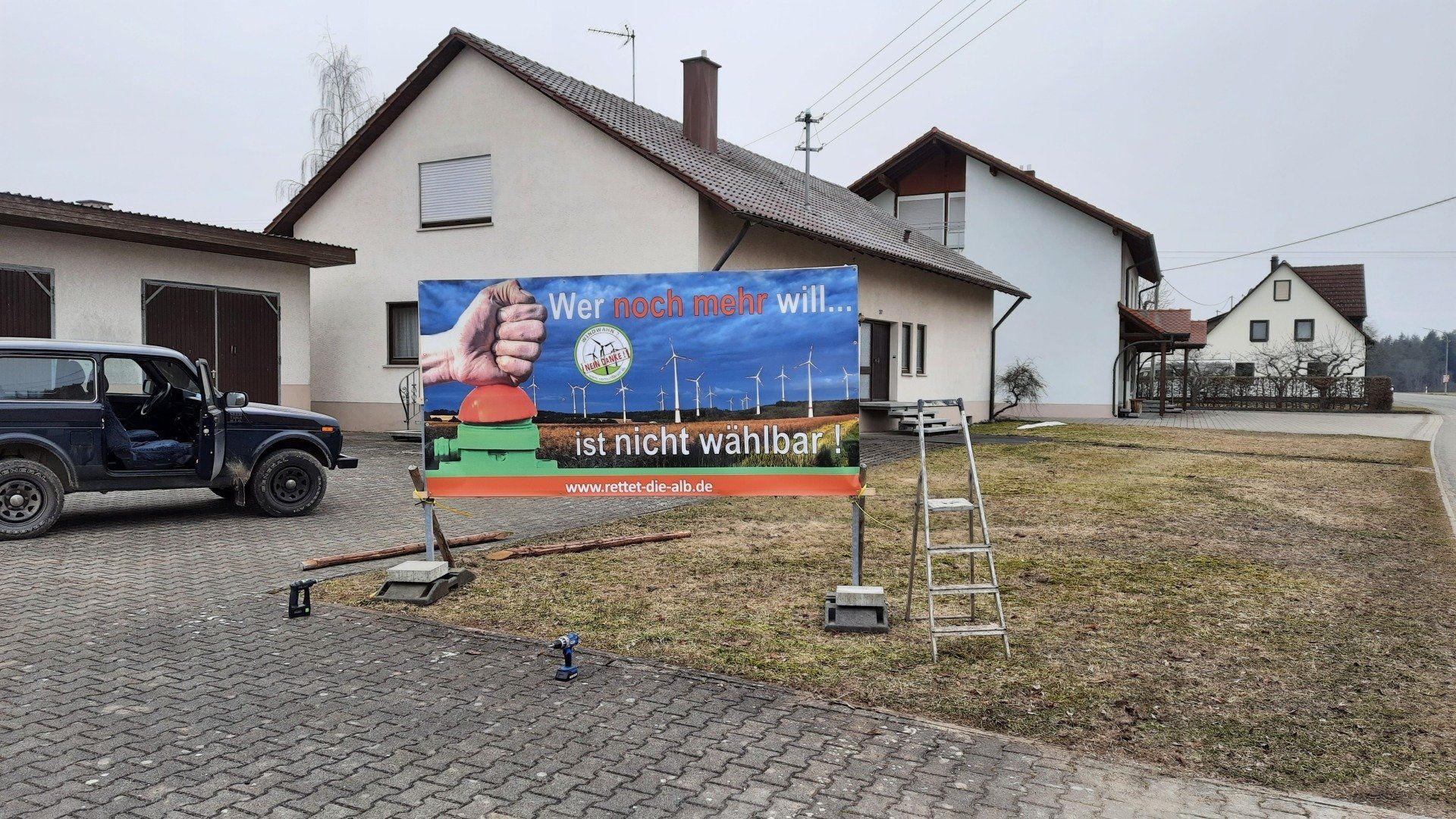 Bürgerinitiativen gegen den Windpark Winterlingen zeigen vor der Wahl Flagge